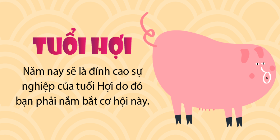 Khá may mắn trong sự nghiệp, những người sinh ra năm tuổi Hợi sẽ ở đỉnh cao của sự nghiệp, vì vậy hãy nắm bắt cơ hội và không bao giờ lãng phí may mắn trong sự nghiệp. Hãy thử nhiều công việc khác nhau, bạn sẽ tìm thấy một công việc phù hợp bất ngờ. Về mặt học hành, bạn là ưu tú vì bạn rất thông minh và phù hợp nhất để khởi nghiệp. Nhưng nếu không được phép bởi các điều kiện khách quan, bạn cũng có thể làm việc để người khác hoàn thành điều gì đó; đừng chùn bước vì trí thông minh của bạn - thành công bao gồm 1% quà tặng và 99% nỗ lực. Chỉ khi bạn tận dụng tốt năng lượng và tài năng của mình, bạn mới có thể sống với may mắn khá tốt cho sự nghiệp trong năm nay.